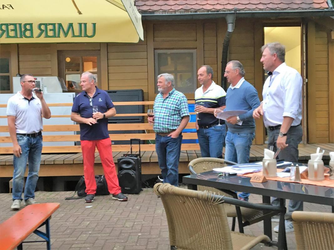 Im Namen unserer Handwerker und des GCOs möchten wir uns recht herzlich bedanken bei allen Gästen vom GC-Gröbernhof, GC-Breisgau, G&CC-Velderhof, Golfclub USGA und Teilnehmer vom VcG. Bei den Frauen der Sponsoren für die hervorragende Halfway-Versorgung, den Damen von der Coktailbar und den Service-Kräften für ihr Engagement. Unseren Greenkeepern für ihren Besuch und den hervorragenden Platz. Natürlich bei Gaby und Toby für das tolle Buffet und bei Frank Ludewig vom Tabakhaus-Lahr für seine Verkostung "unds Brägele moche", war ne coole Sache.